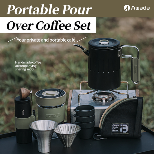 Awada Portable Hand Drip Coffee Maker – Travel Pour-Over Coffee Set with Grinder for Camping & Office