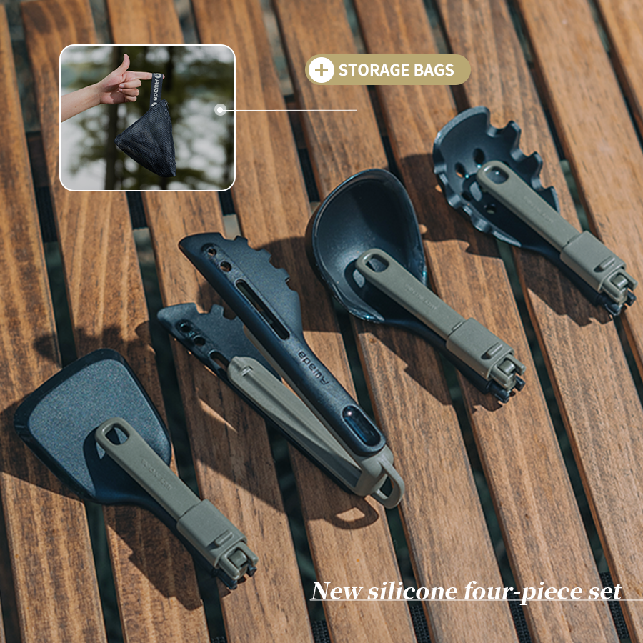 π΄ Complete 4-Piece Set: Foldable silicone spatula, spoon, ladle, and clamp β all you need for outdoor cooking.